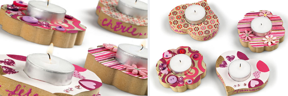 • Personnaliser le bougeoir avec des strass, formes adhésives, autres papiers décoratifs et gommettes.