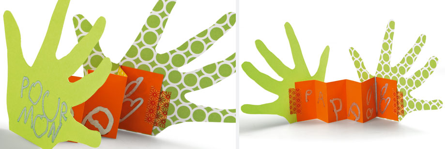 • Les mains peuvent aussi être collées sur du papier pour réaliser une carte.
