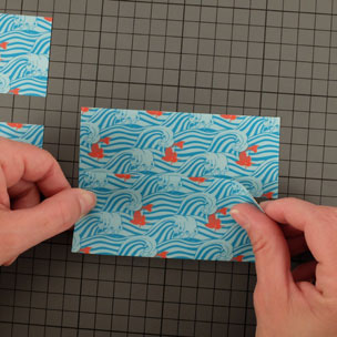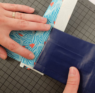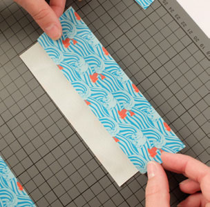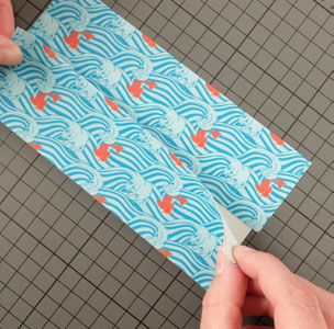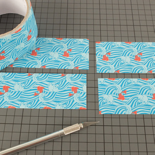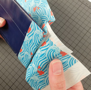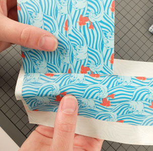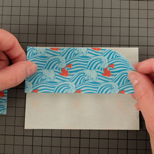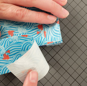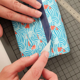 • Couper une bande de Queentape à motifs de 12 cm environ pour fermer la base du porte-cartes.