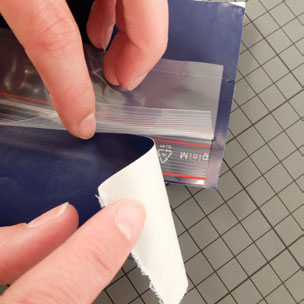 • Couper un zip de 12 x 4 cm et 4 bandes de 16 cm de Queentape uni.