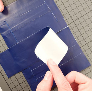 • Coller la partie A au dos du porte-cartes. Puis coller à cheval les bandes de Queentape restantes en suivant les photos.
