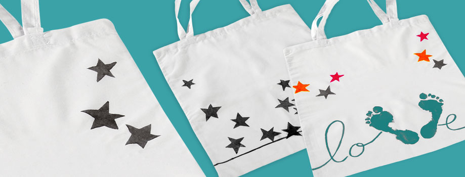 1. Commencez par enduire les pieds ou les mains de l’enfant avec la peinture, puis aidez-le à reproduire ses empreintes sur le sac. Laissez sécher.