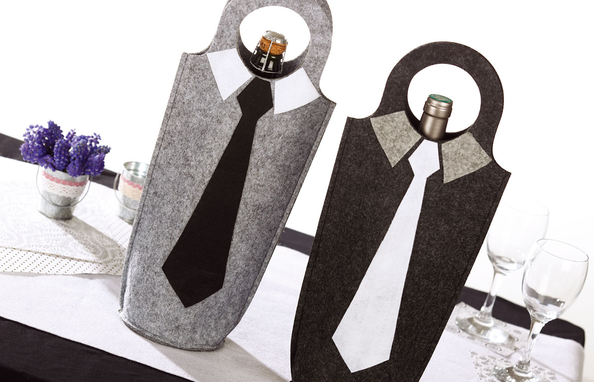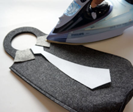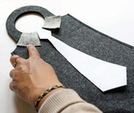 • Coller la cravate et le col à l’endroit voulu sur le sac.