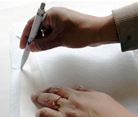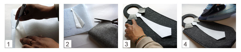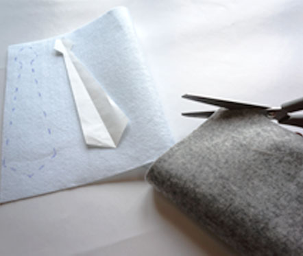 • A l’aide d’un gabarit, reporter la forme de cravate et du col de chemise sur une feuille de feutrine.