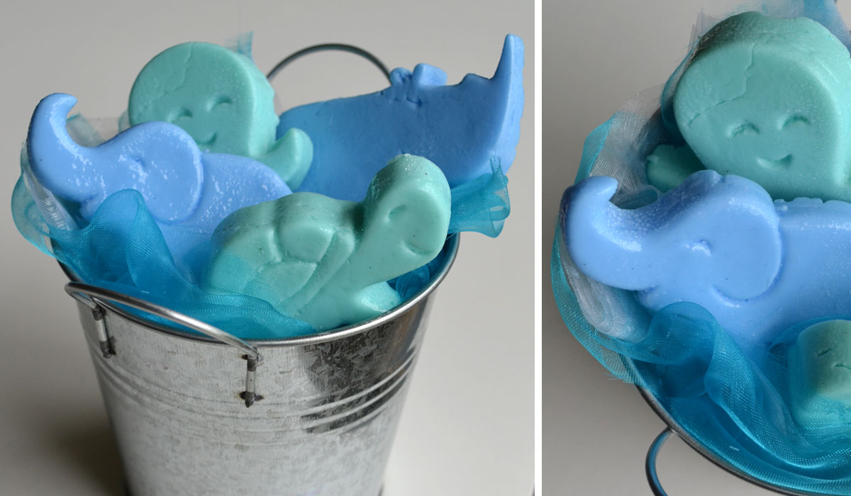 Ajouter quelques gouttes d’huile parfumée (une vingtaine), bien mélanger et demander à l’enfant de verser le tout dans les minis moules Animaux.