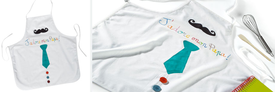 • A l’aide des feutres, personnaliser le tablier avec un message pour papa !