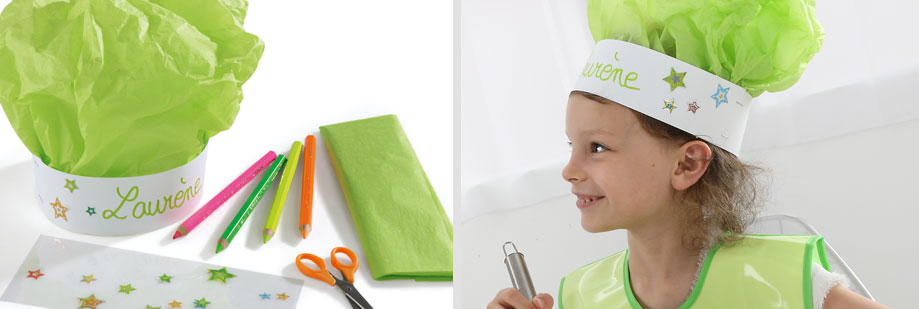 Prendre une feuille de papier crépon (environ 30 X 60 cm) ou papier de soie et coller le bord de la feuille petit à petit autour de la base de la toque pour la finaliser.