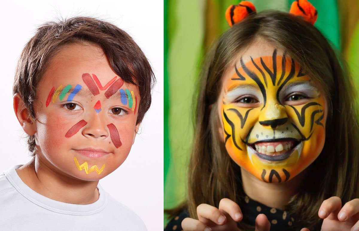 Avec une éponge humide, tamponner très légèrement le visage de l’enfant en rouge.