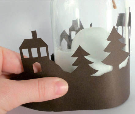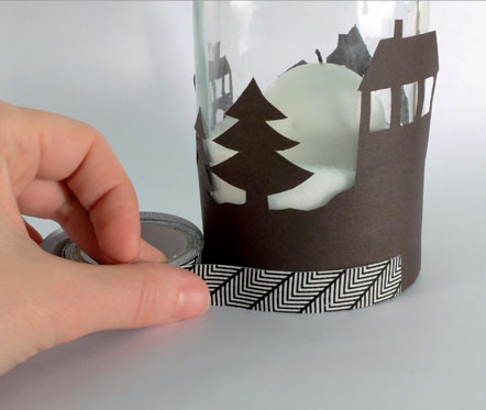 • Coller la réalisation sur le pot à l'aide de colle en stick, puis placer la bougie à l'intérieur