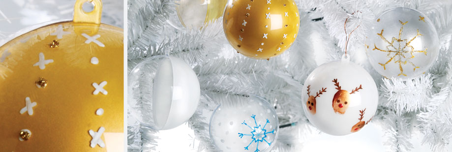 • Fermer la boule et en décorer l’extérieur avec la peinture Diams ou des feutres Giotto décor, en dessinant les étoiles, flocons de neige ou rennes.