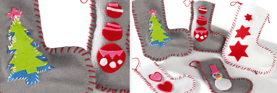 Décorer la chaussette avec des formes en feutrines que vous collez.