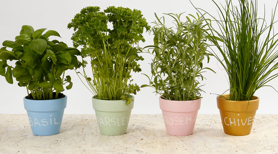 • Décorez des pots en terre cuite avec de la peinture tableau pour craie