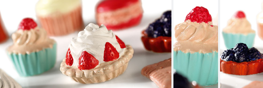 • Prendre une gourmandise en plâtre et la peindre avec les couleurs choisies.